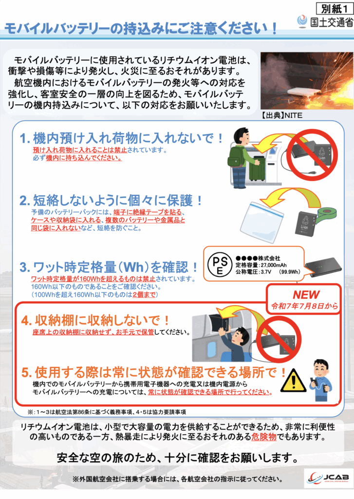 A partir de mañana 8 de julio, se implementará una regulación significativa sobre el manejo de mobairubatterī (baterías portátiles) en los aviones.