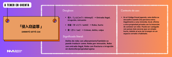 “El que sin justificación entra en una residencia ajena será sancionado con hasta 3 años de prisión o multa de hasta 100,000 yenes.” - Combinación de ambos delitos (侵入窃盗) puede llevar a penas más severas, de hasta 10 años.