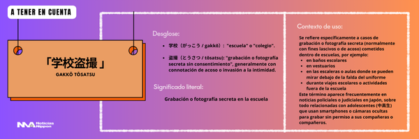 Uno de los hechos más graves ocurrió durante una excursión escolar en Saitama, donde un alumno de secundaria grabó a compañeros mientras se bañaban en un ryokan (alojamiento tradicional japonés). Fue enviado a la fiscalía bajo el cargo de captura ilícita de imágenes con connotación sexual.