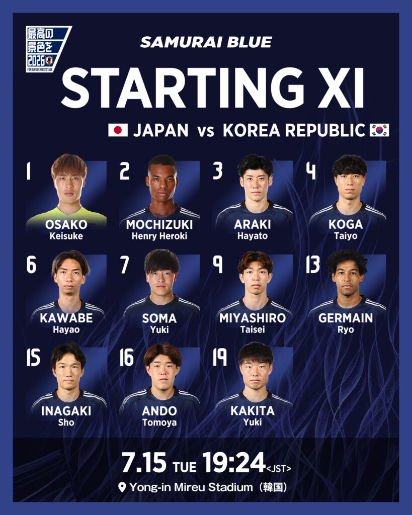A pesar del buen inicio, la segunda parte fue dominada por los surcoreanos, que explotaron constantemente el sector izquierdo, generando varias llegadas peligrosas. Japón se replegó con orden y sacrificio, realizando cambios defensivos clave a partir del minuto 65: entraron Ryūnosuke Satō, Maeda Hosoya, Zento Uno y Naomichi Ueda para reforzar líneas y aguantar el resultado.
