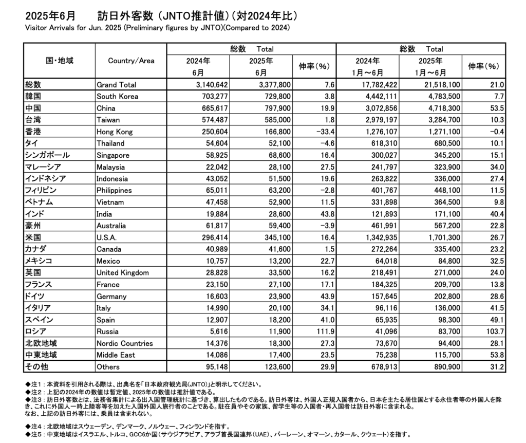 Lo más significativo, sin embargo, es que Japón alcanzó la marca histórica de 21,518,100 visitantes en solo la primera mitad del año.
