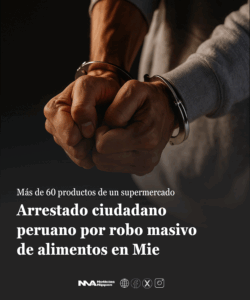 Un ciudadano peruano de 49 años fue arrestado por la policía japonesa acusado de participar en un caso de robo masivo de alimentos en un supermercado.