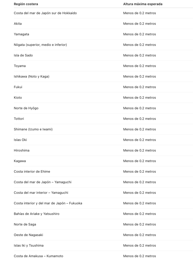 - ❗ Las olas pueden superar los 3 metros en ciertas áreas y llegar horas después de la primera.