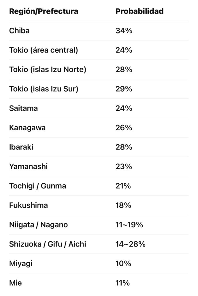 💡 Interpretación: Aunque aún hay alta incertidumbre en el trayecto exacto, muchas prefecturas del centro y este de Japón ya figuran con probabilidades relevantes de ser afectadas por vientos fuertes, por lo que se recomienda monitoreo constante.