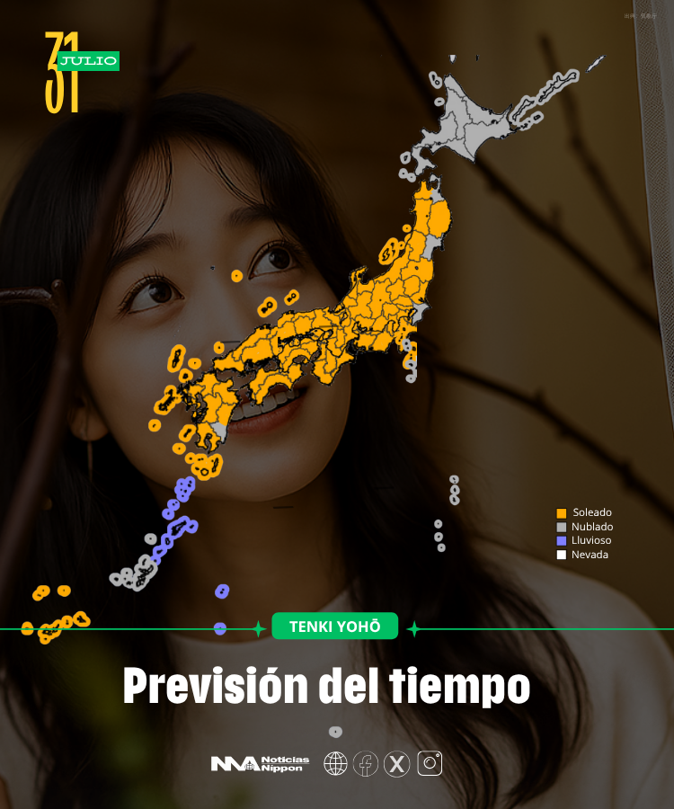 - 🟡 Hokkaidō: Día mayormente nublado, con temperaturas más suaves pero aún húmedas y calurosas.