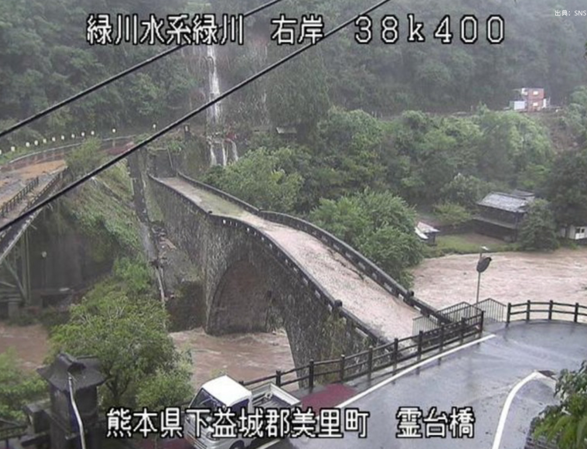 La situación hidrológica es alarmante. El río Midorikawa, uno de los cauces más importantes de Kumamoto, está bajo alerta de desbordamiento.