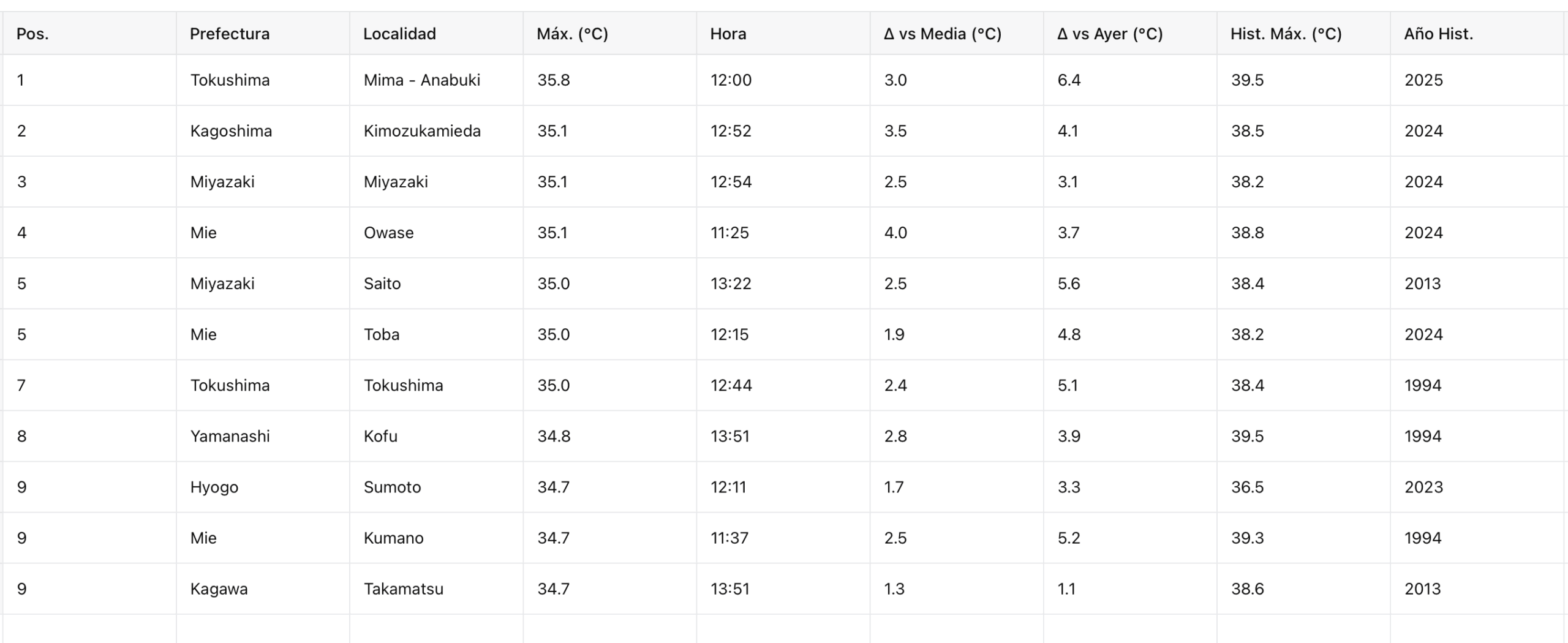 🌡 Ranking de temperaturas máximas en Japón