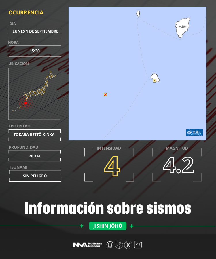 El sismo de hoy en las islas Tokara fue moderado en magnitud (M4.2), pero fuerte en percepción (Shindo 4) en Akusekijima. No hubo alerta de tsunami, ni reportes de daños, pero sí un claro recordatorio para las comunidades isleñas de que su ubicación las hace vulnerables a fenómenos naturales. Para muchos, este temblor fue menos un susto y más un llamado a no bajar la guardia en la cultura de prevención sísmica que caracteriza a Japón.