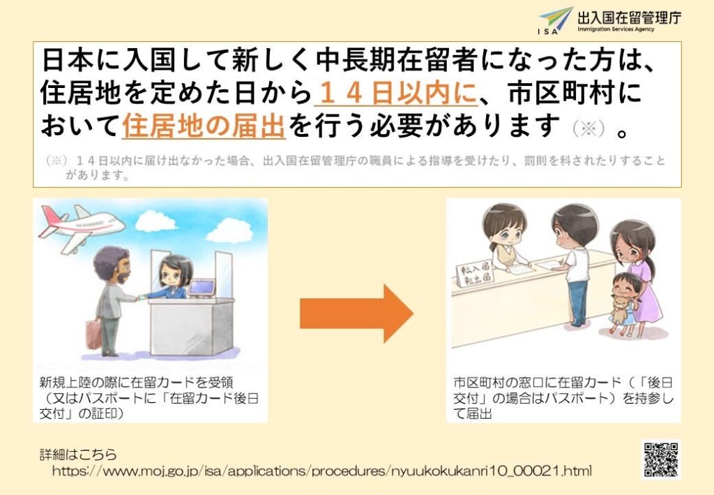 Este trámite se conoce oficialmente como  jūkyochi no todokede (住居地の届出, “notificación de lugar de residencia”) y se realiza en el  shiyakusho (市役所,  ayuntamiento) o en la kuyakusho ( 区役所, oficina de distrito) de la ciudad donde la persona resida.