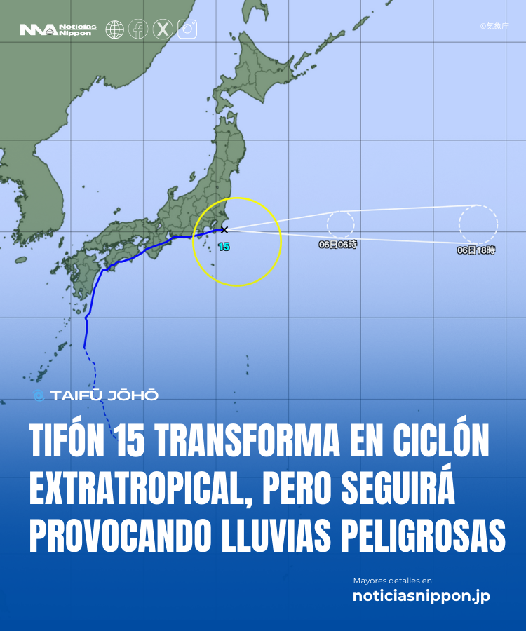 El tifón Nº15 Peipah se debilitará en las próximas horas, pero la madrugada del sábado 6 sigue siendo crítica para el este y norte de Japón. El mayor peligro inmediato se centra en inundaciones repentinas, deslizamientos de tierra y alto oleaje en la costa del Pacífico.