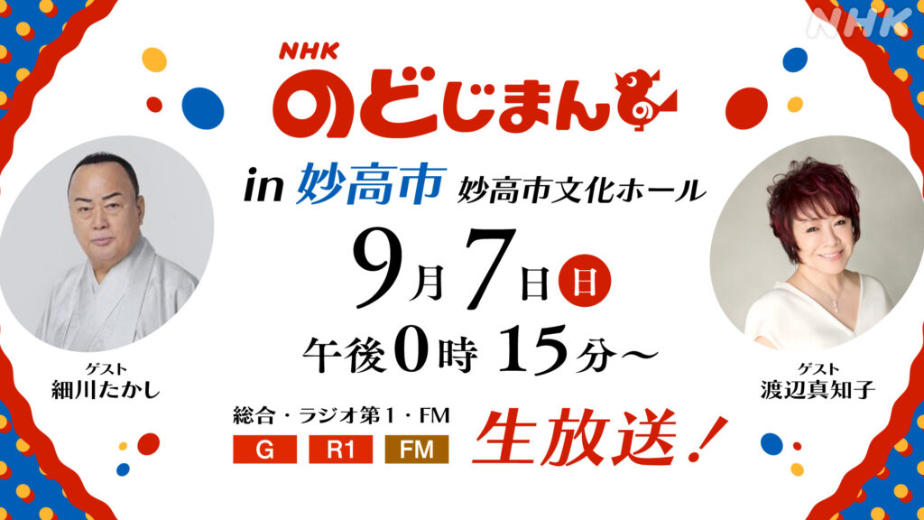 Hoy domingo, la tradicional competencia musical popular de Japón, 「NHK のど自慢」(NHK Nodo Jiman), se transmitirá en vivo desde Myōkō, prefectura de Niigata.