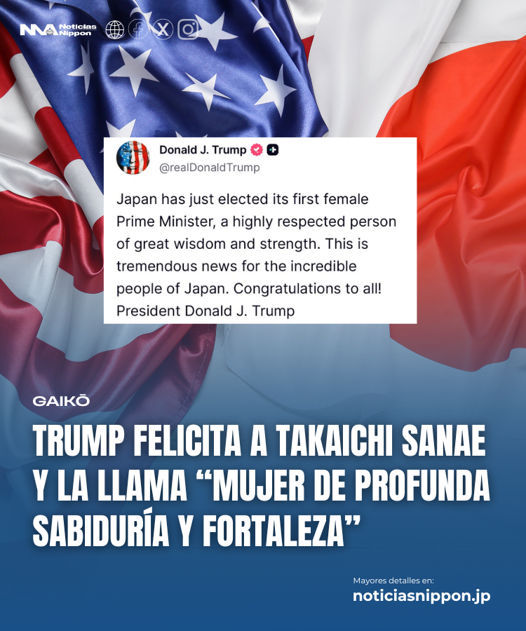 El presidente de Estados Unidos, Donald Trump, publicó un mensaje en su red social Truth Social felicitando a Takaichi Sanae recién elegida como presidenta del Partido Liberal Democrático (PLD) de Japón.