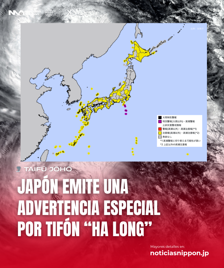 A las 16:50 de la tarde del miércoles, la Agencia Meteorológica de Japón (気象庁) emitió una advertencia especial por vientos y oleaje violentos (暴風・波浪特別警報) para las islas de Izu, pertenecientes a Tokio.