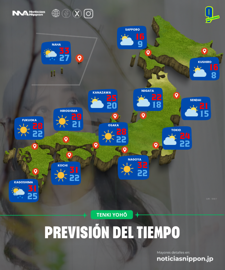 En Nagoya el calor será intenso y seco, típico de un verano tardío.