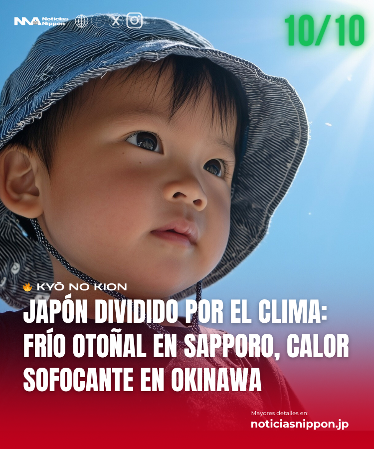 El contraste térmico entre Okinawa (más de 33 °C) y Hokkaidō (alrededor de 15 °C) superó los 18 °C, lo que da una idea de cómo Japón está dividido entre el calor tropical y el aire otoñal.