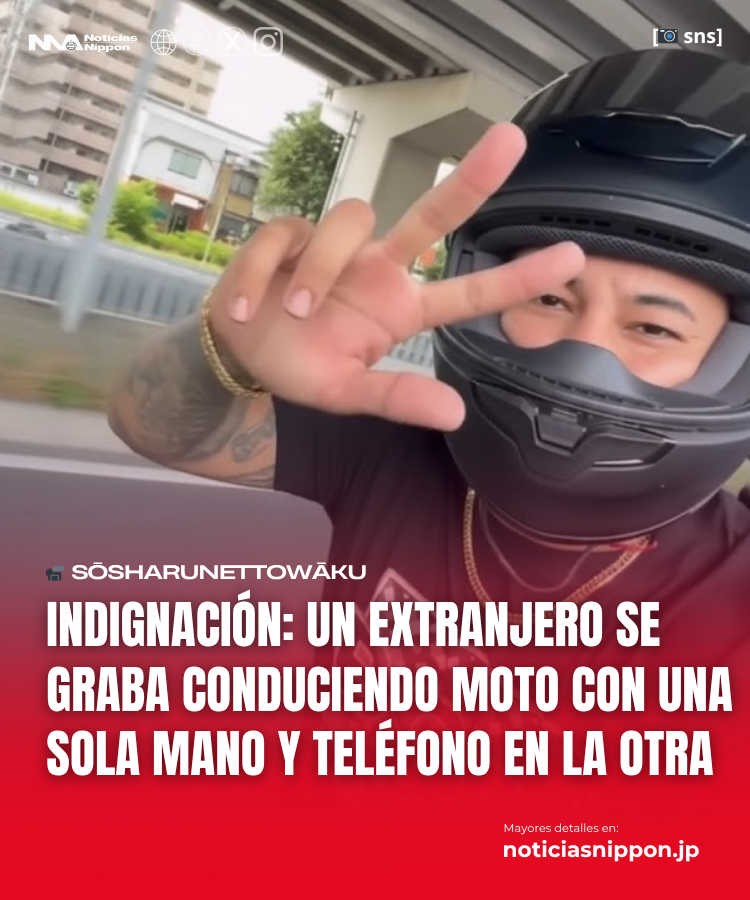 Un video difundido en redes sociales muestra a un hombre de nacionalidad brasileña y residente en Japón, conduciendo una motocicleta deportiva mientras sostiene un teléfono inteligente con una mano. En las imágenes se le ve grabándose en movimiento, sin usar ambas manos para controlar el vehículo.