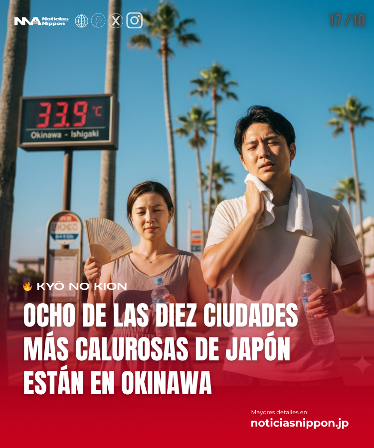 En total, ocho de los diez puntos más calurosos del día se ubicaron en Okinawa. Varios de ellos —como Ishigaki, Miyako y Shimoji— batieron récords de temperatura para octubre.