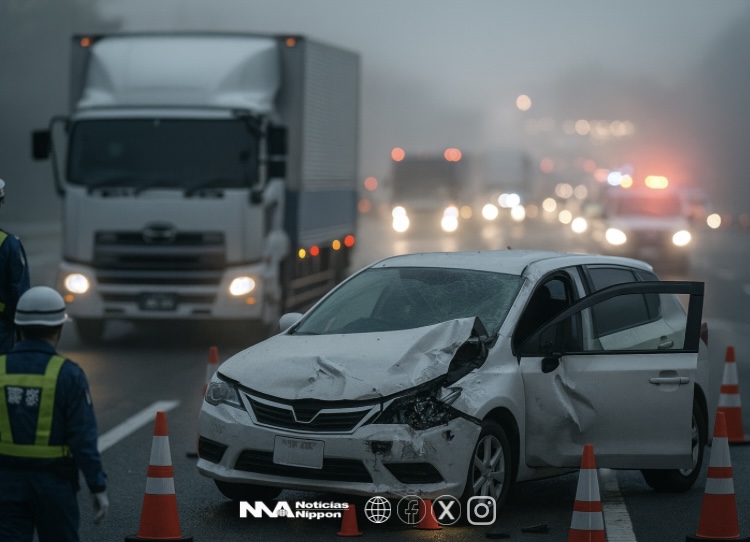 El siniestro ocurrió en el tramo de la localidad de Kamisato  cuando un automóvil se estrelló primero contra el guardarraíl izquierdo y fue impactado segundos después por un camión que circulaba detrás.