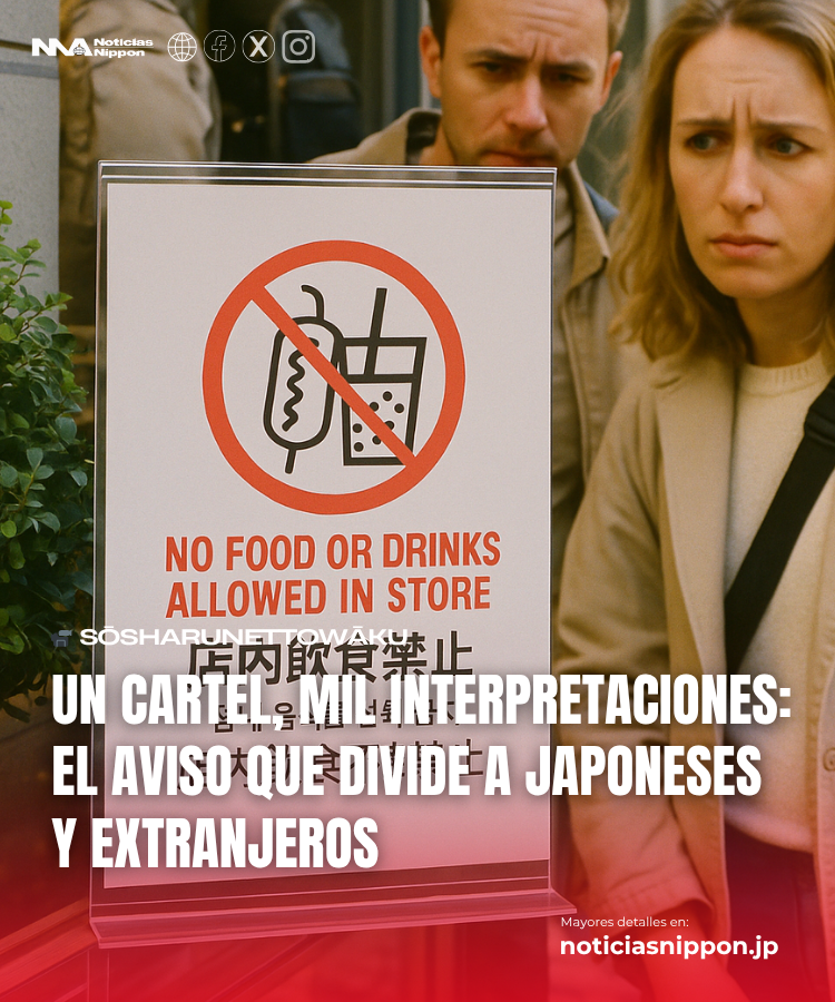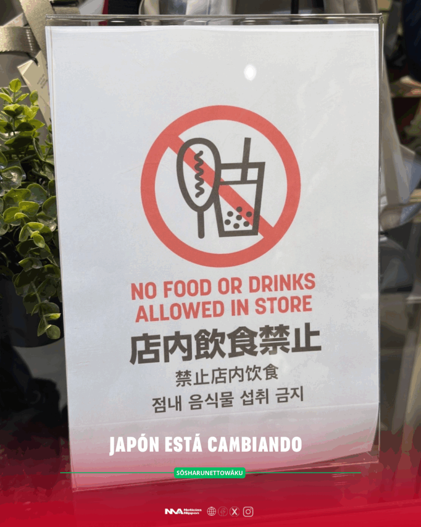 El pequeño cartel —con su simple frase “NO FOOD OR DRINKS ALLOWED IN STORE”— ha terminado convirtiéndose en un símbolo de la delgada frontera cultural entre la cortesía y la incomodidad, recordando que en Japón, la armonía colectiva (和) sigue siendo más importante que la libertad individual en los espacios públicos.