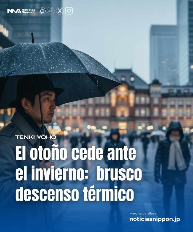 Desde Tōkyō hasta Kyūshu, una jornada de lluvia fría: la capital no superará los 12 °C, un nivel típico de mediados de diciembre
