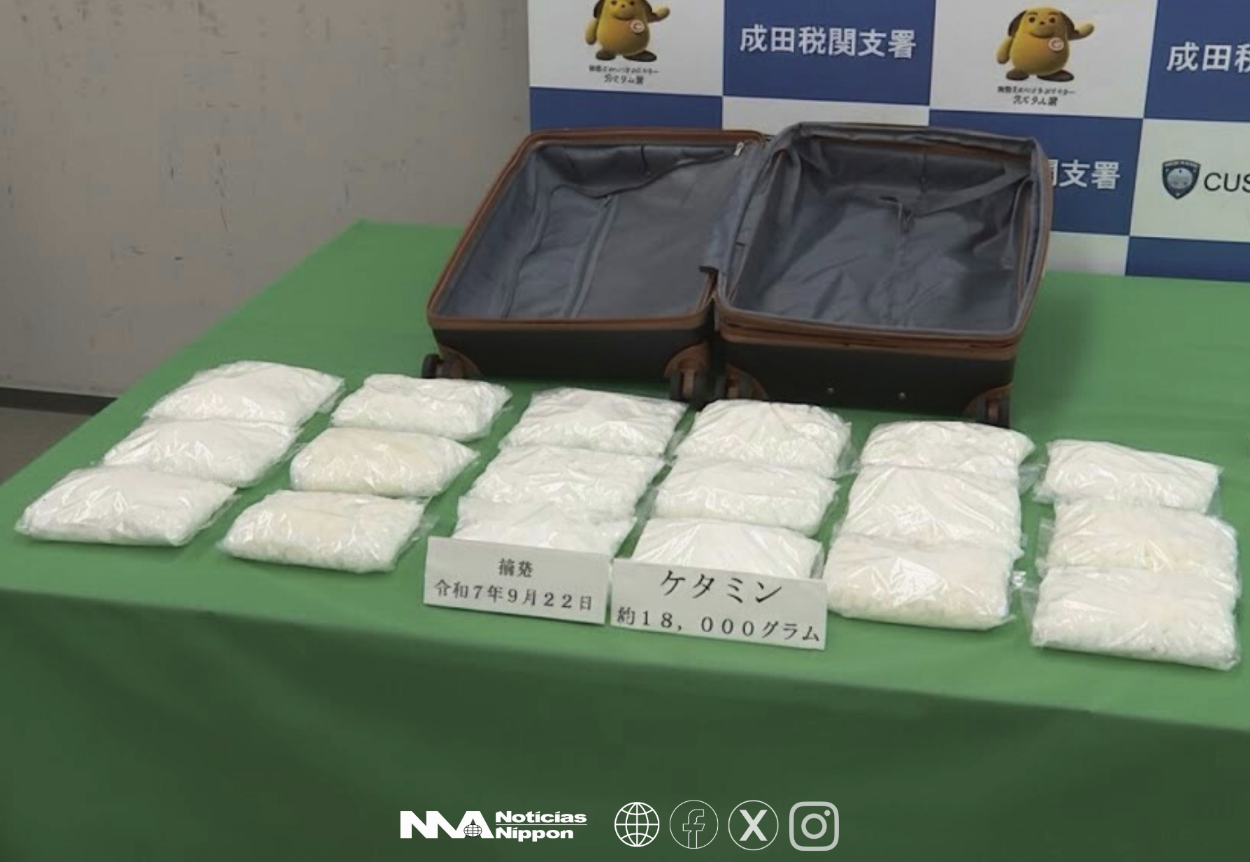 Dos mujeres británicas fueron detenidas acusadas de intentar ingresar 8 mil millones de yenes en ketamina a Japón. Las sospechosas fueron interceptadas en vuelos desde Frankfurt con 37 kilos del potente anestésico, escondidos en maletas de doble fondo. Las autoridades creen que actuaban como “mulas” reclutadas por redes criminales transnacionales.
