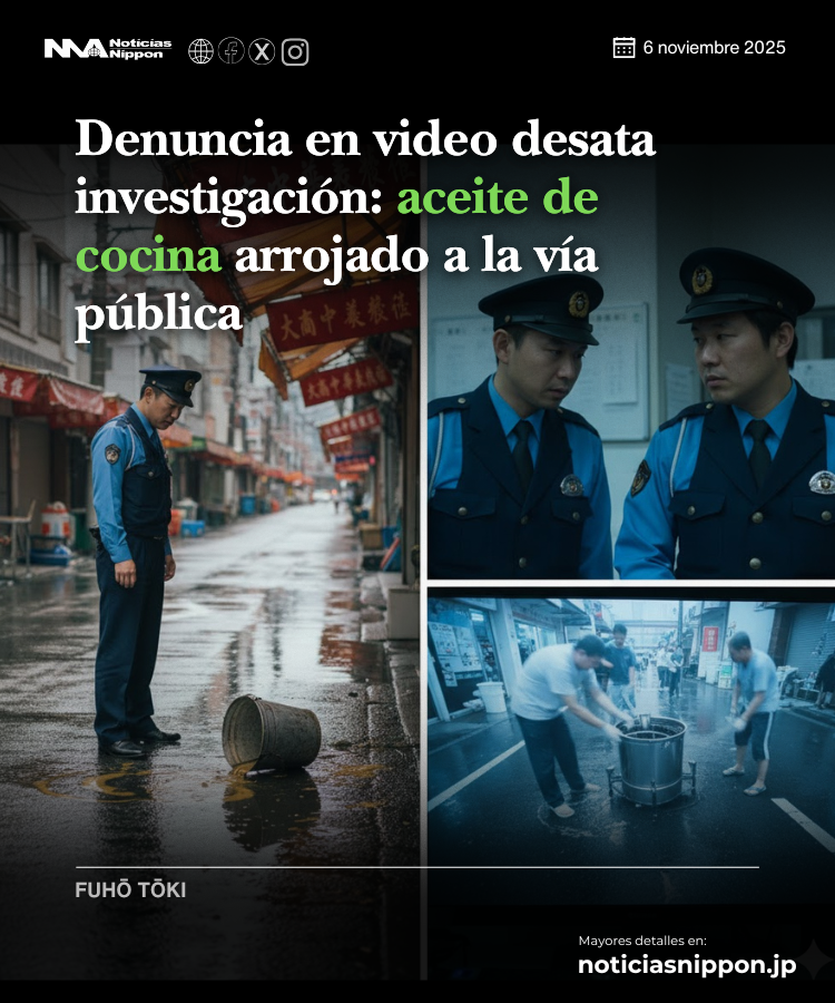 Los acusados habrían vertido agua contaminada con aceite usado directamente sobre la vía pública frente a su local en la ciudad de Daitō.