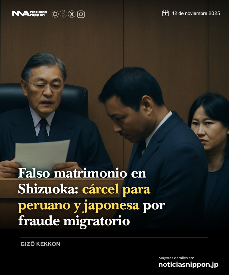 El Tribunal de Distrito de Shizuoka, sede de Numazu, dictó sentencia contra un hombre de nacionalidad peruana (44 años, residente en el distrito Shimizu de Shizuoka) y una mujer japonesa (41 años, desempleada, residente en Aoi-ku), por haber fingido un matrimonio con el fin de obtener un estatus de residencia de largo plazo en Japón.