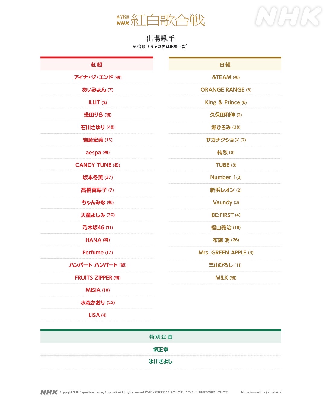 🔴 Lista completa de artistas — EQUIPO ROJO (Aki Gumi – 紅組)