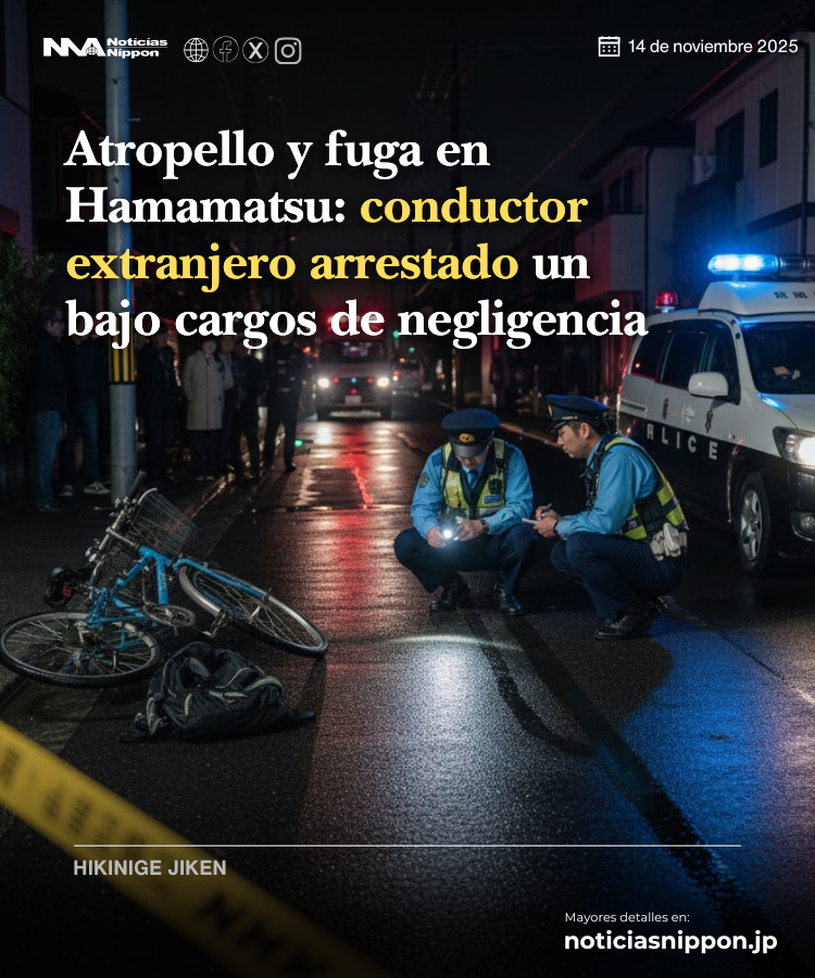 La policía de Hamamatsu informó  la detención de un hombre de nacionalidad brasileña, residente en el distrito Hamana de Hamamatsu, sospechoso de haber provocado un accidente con heridos y posteriormente huir del lugar.