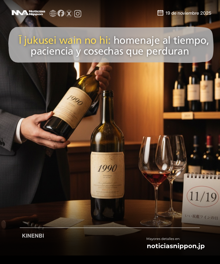 En un país donde cada día del calendario parece guardar un significado especial, este 19 de noviembre Japón descorcha una tradición relativamente nueva, pero con sabor profundo: Ī jukusei wain no hi (いい熟成ワインの日, el Día del Buen Vino Añejo).