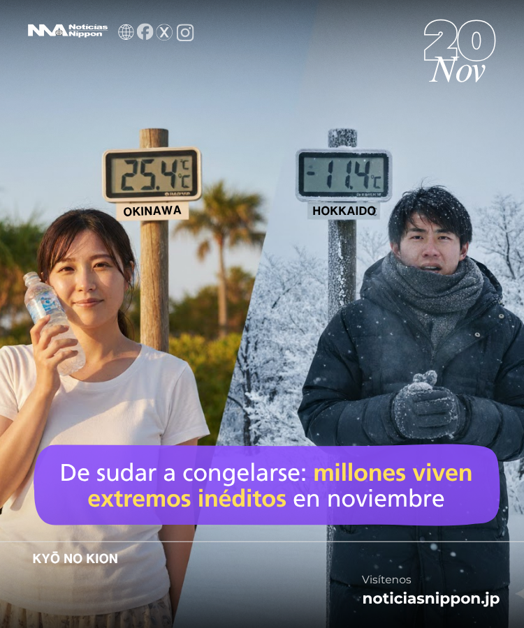 Según los datos de observatorios locales, Okinawa volvió a encabezar las temperaturas más altas, mientras que Hokkaidō amaneció bajo un frío severo, con mínimas de dos dígitos negativos.