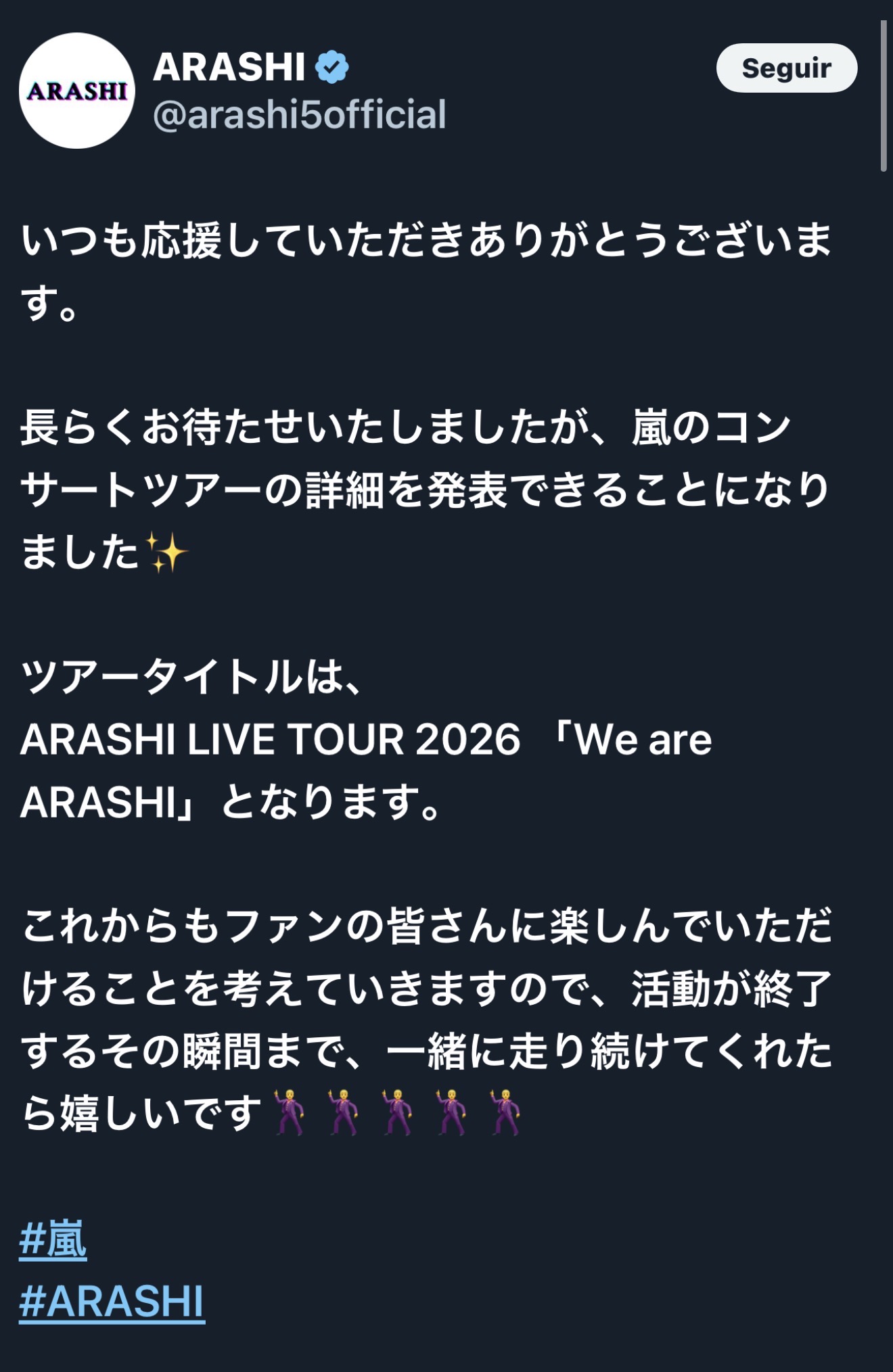 ¡Furor total! ARASHI revela fechas de su última gira y los fans colapsan la red