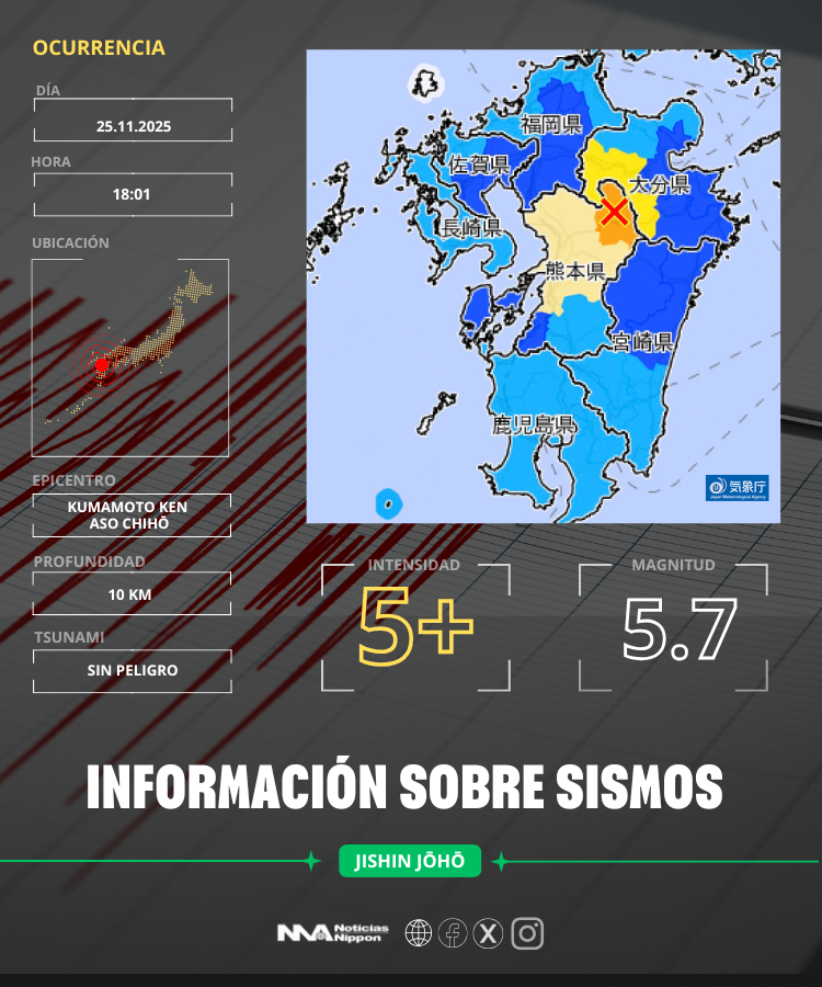 La mayor sacudida se registró en 産山村 (Ubuyama). Hogares, centros comunitarios y establecimientos turísticos informaron caídas de objetos, grietas menores y cortes intermitentes de electricidad. La población local, habituada a los temblores de la zona volcánica de Aso, describe este como “uno de los más fuertes del año”.