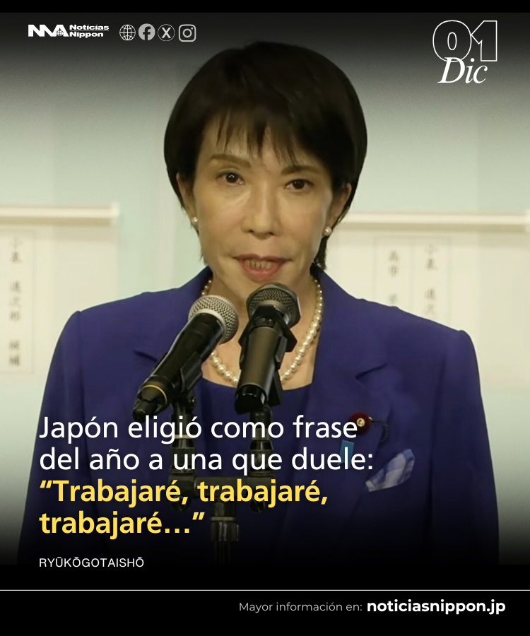 Japón cerró el 2025 poniendo nombre a su herida abierta: Hataraite hataraite hataraite hataraite hataraite mairimasu/ josei shushō「働いて働いて働いて働いて働いてまいります/女性首相」(“Trabajaré, trabajaré, trabajaré, trabajaré, trabajaré / primera ministra mujer”).
