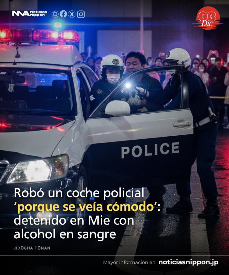 En una escena digna de un guion absurdo pero real, un hombre de 44 años fue detenido en la prefectura de Mie tras robar un patrullero con el motor encendido mientras los agentes atendían un accidente de tráfico en un estacionamiento comercial de la ciudad de Suzuka.