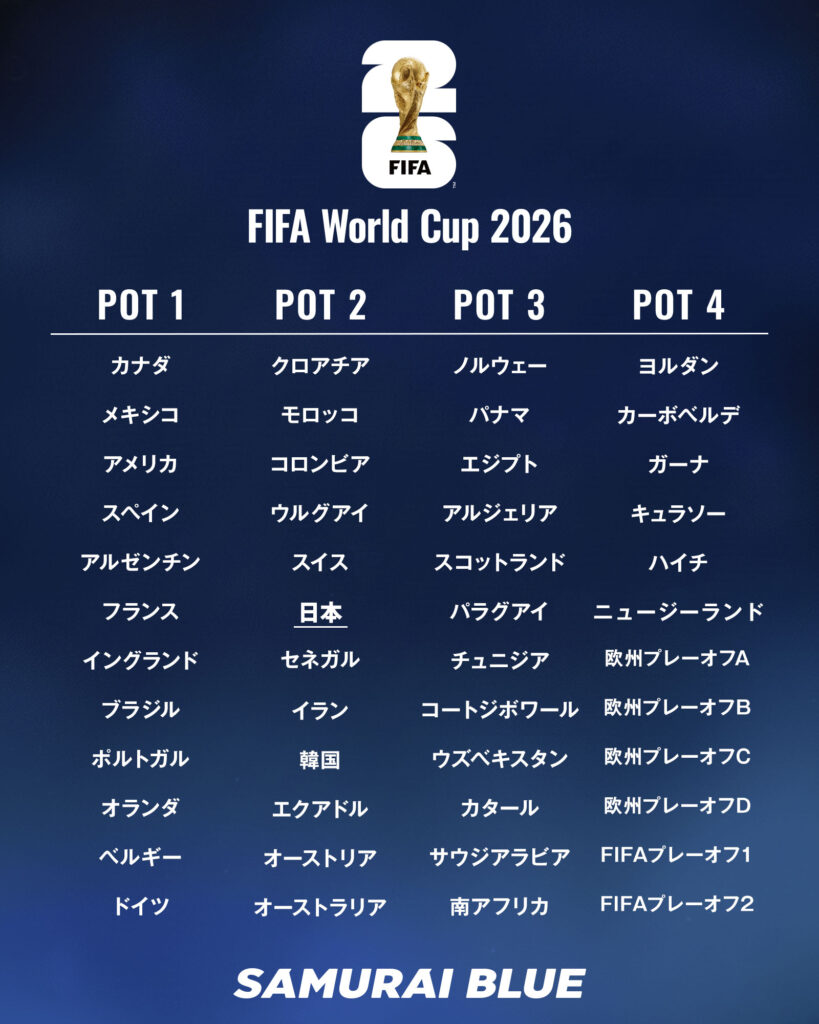 El sistema de potes, basado en el ranking FIFA, abre una ventana favorable: Japón, actualmente 18º del mundo, no enfrentará a los equipos del mismo Pot 2.
