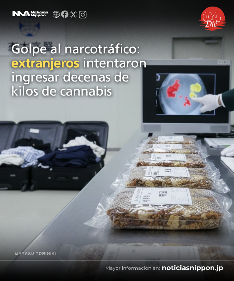 En un operativo que vuelve a colocar bajo foco el creciente uso de aeropuertos japoneses para el contrabando de drogas, la Oficina de Aduanas de Osaka en el Aeropuerto Internacional de Kansai denunció ante la fiscalía a dos ciudadanos vietnamitas que intentaron introducir al país 31,138.5 gramos de cannabis camuflados en su equipaje.