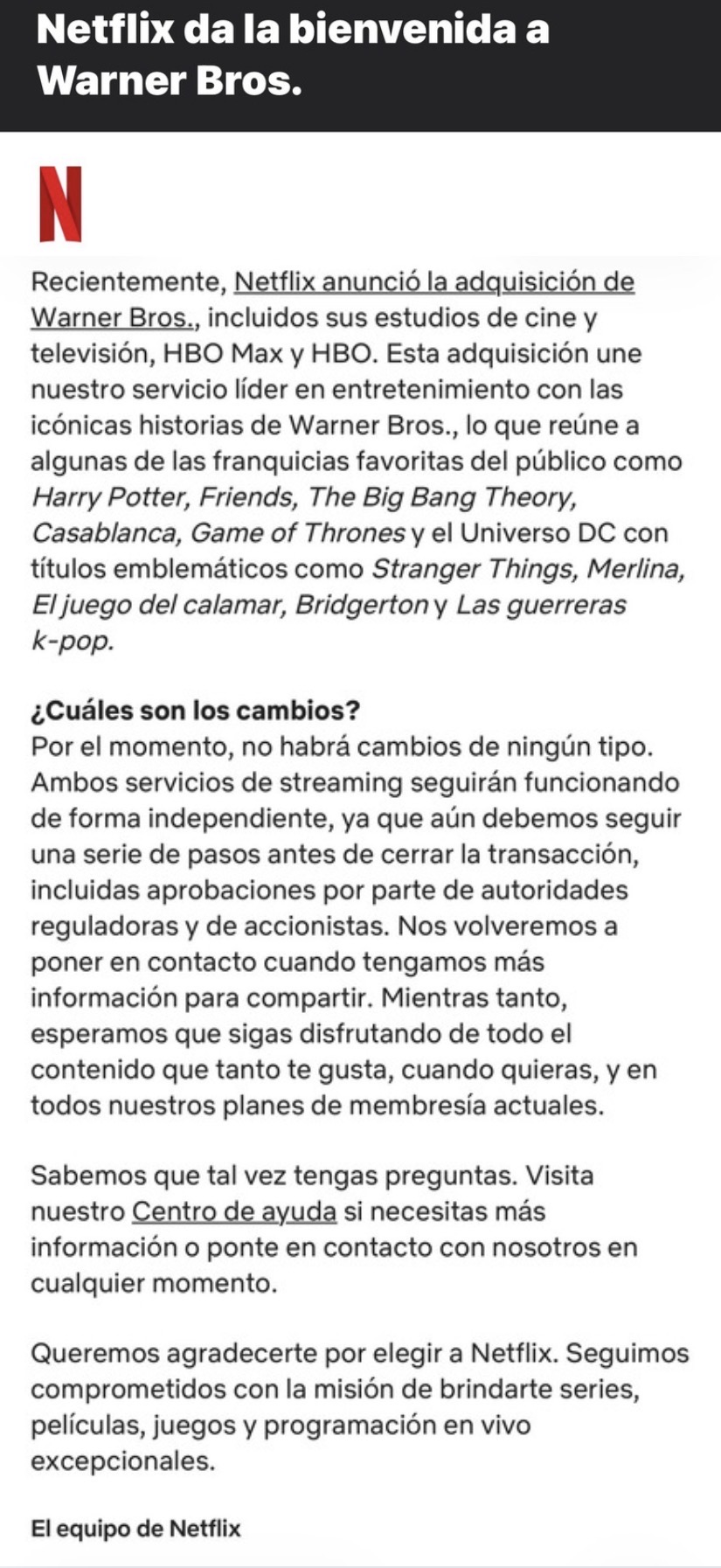 Netflix pasa de ser “solo un streamer” a convertirse en el conglomerado audiovisual más grande del planeta.