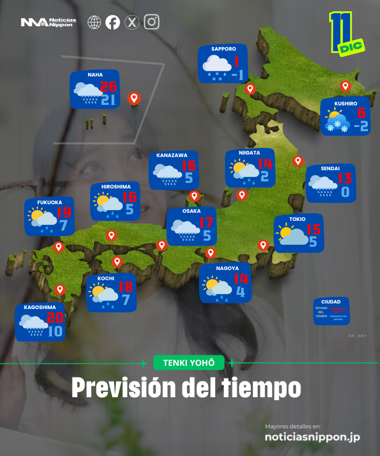 Mientras el norte se prepara para lluvias intensas, nieve y viento frío que corta la piel, el extremo sur —Okinawa— despierta con temperaturas casi veraniegas, húmedas, pesadas, irreales para diciembre.