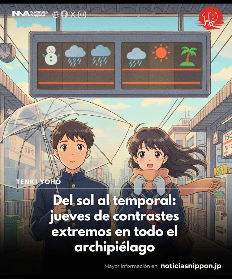 Japón amanece este jueves con un cielo inquieto, casi dramático, como si el clima hubiera decidido partir el archipiélago en dos mundos distintos.