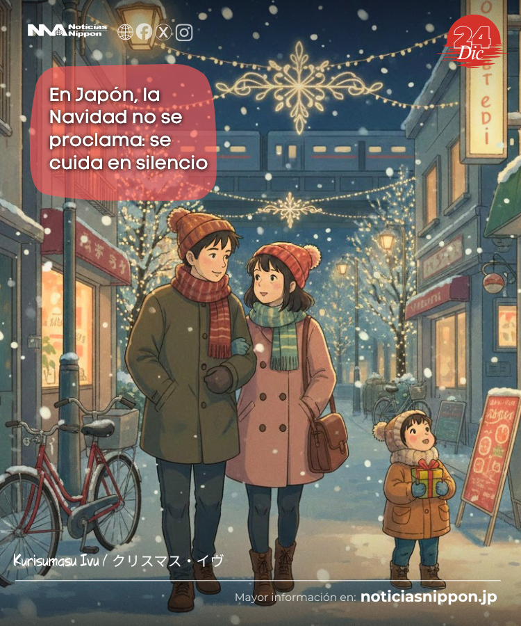 La noche del 24 de diciembre cae suavemente sobre Japón. No es una noche cualquiera. Las luces no solo iluminan las calles: abrigan. En los escaparates, en los balcones modestos, en las estaciones repletas de gente que vuelve a casa, el país entero parece bajar el ritmo y respirar distinto.