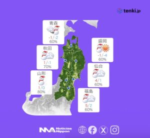 ❄️🌥 TŌHOKU — Nevadas moderadas y frío invernal