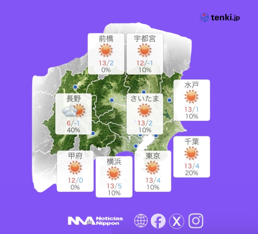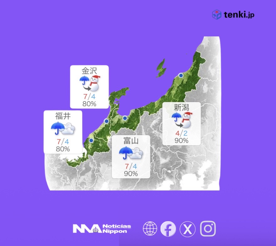 Más al sur, Okinawa y las islas del suroeste tendrán un ambiente cálido pero marcado por lluvias frecuentes y alta humedad, típico del clima subtropical de fin de año. Este panorama climático, que combina nieve, sol y lluvia según la región, invita a los residentes —especialmente a los extranjeros que quizá no estén acostumbrados a estos contrastes— a prestar atención a los pronósticos locales, abrigarse adecuadamente y planificar sus desplazamientos con precaución.