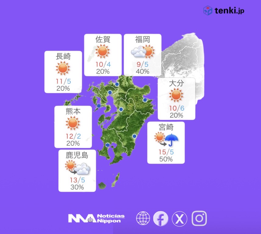 ☀️🌤 KYŪSHŪ — Buen tiempo en casi toda la región
