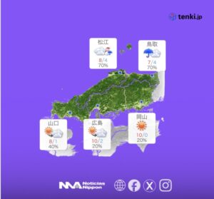 🌥🌧 CHŪGOKU — Nubes y lluvia en el norte; más estable al sur