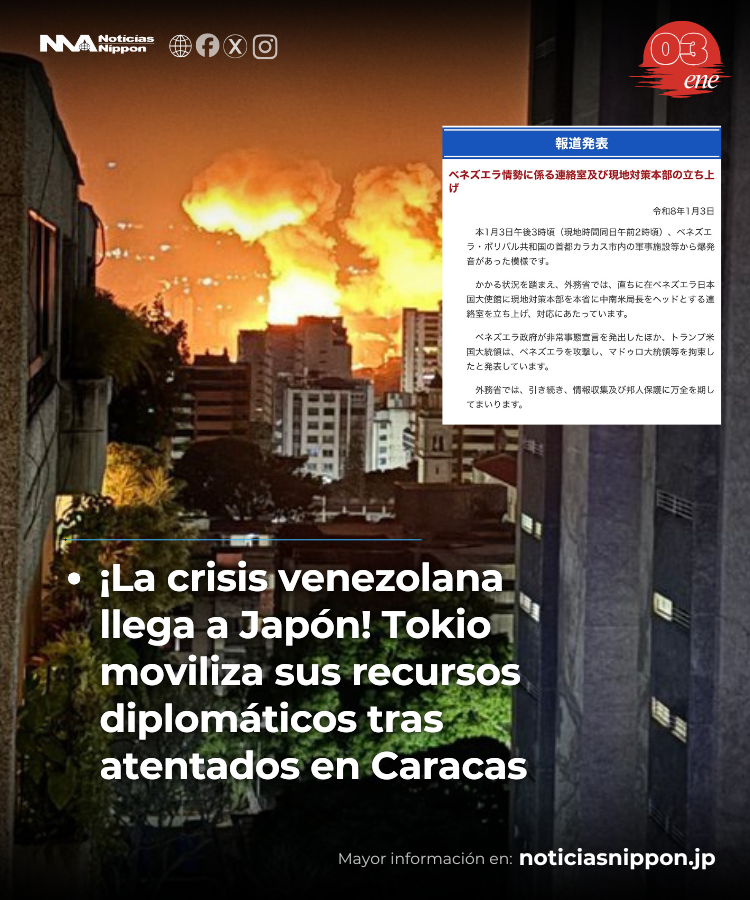 En la madrugada del 3 de enero, Caracas, la capital de Venezuela, fue sacudida por una serie de explosiones provenientes de instalaciones militares clave. A medida que el país enfrenta una creciente crisis política y social, Japón, a través de su Ministerio de Asuntos Exteriores, activó de inmediato un centro de respuesta en su Embajada en Venezuela. La noticia de la explosión ha creado una oleada de preocupación, tanto a nivel local como internacional.