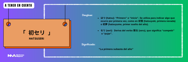 Así como existen el shigoto-hajime (仕事始め) o el goyō-hajime (御用始め) para oficinas y gobierno, el hatsu-seri (初セリ / はつセリ) es el arranque simbólico del trabajo para el mundo del comercio alimentario.