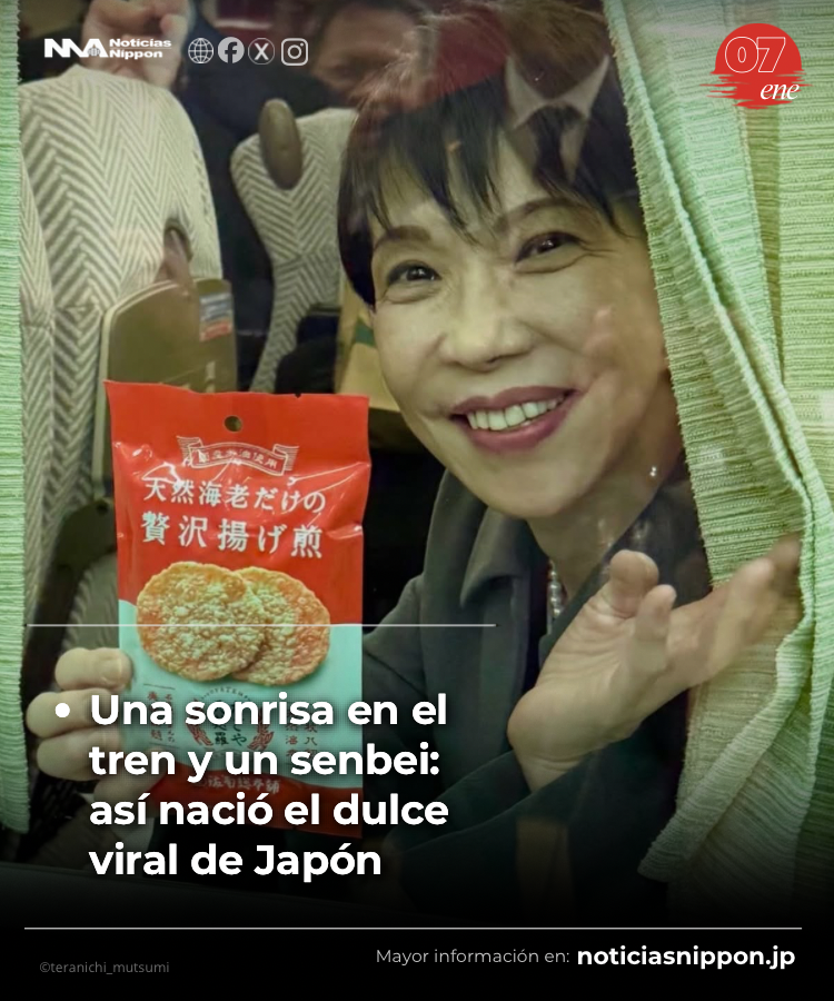 Un simple recuerdo gastronómico local ha terminado convirtiéndose en protagonista nacional. Una fotografía de la primera ministra Takaichi Sanae sosteniendo una bolsa de senbei de camarón —un producto limitado del histórico fabricante Sakakaku Sohonpo de Nagoya— durante su viaje rumbo al Santuario de Ise encendió la curiosidad en redes sociales.