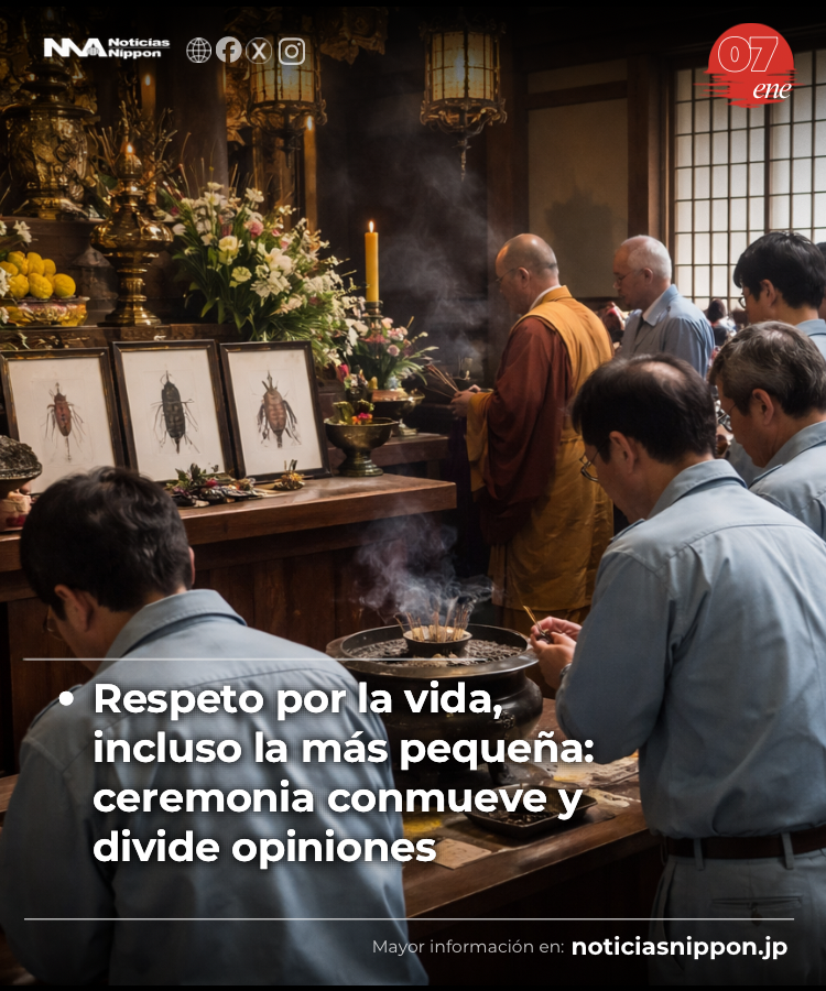 En la ciudad de Ako, una empresa japonesa de insecticidas reúne cada año a un centenar de empleados en un templo budista. Allí, entre incienso y sutras, no homenajean a personas ni a mascotas: recuerdan a los insectos que murieron durante las pruebas de laboratorio.