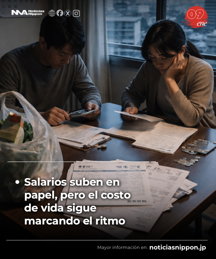 Aunque el salario total en efectivo aumentó 0,5 %, hasta 310.202 yenes, la inflación —con un IPC del 3,3 %— volvió a borrar cualquier mejora aparente. Es el mes 47 consecutivo de alza nominal, una cifra que ya no tranquiliza a los hogares.